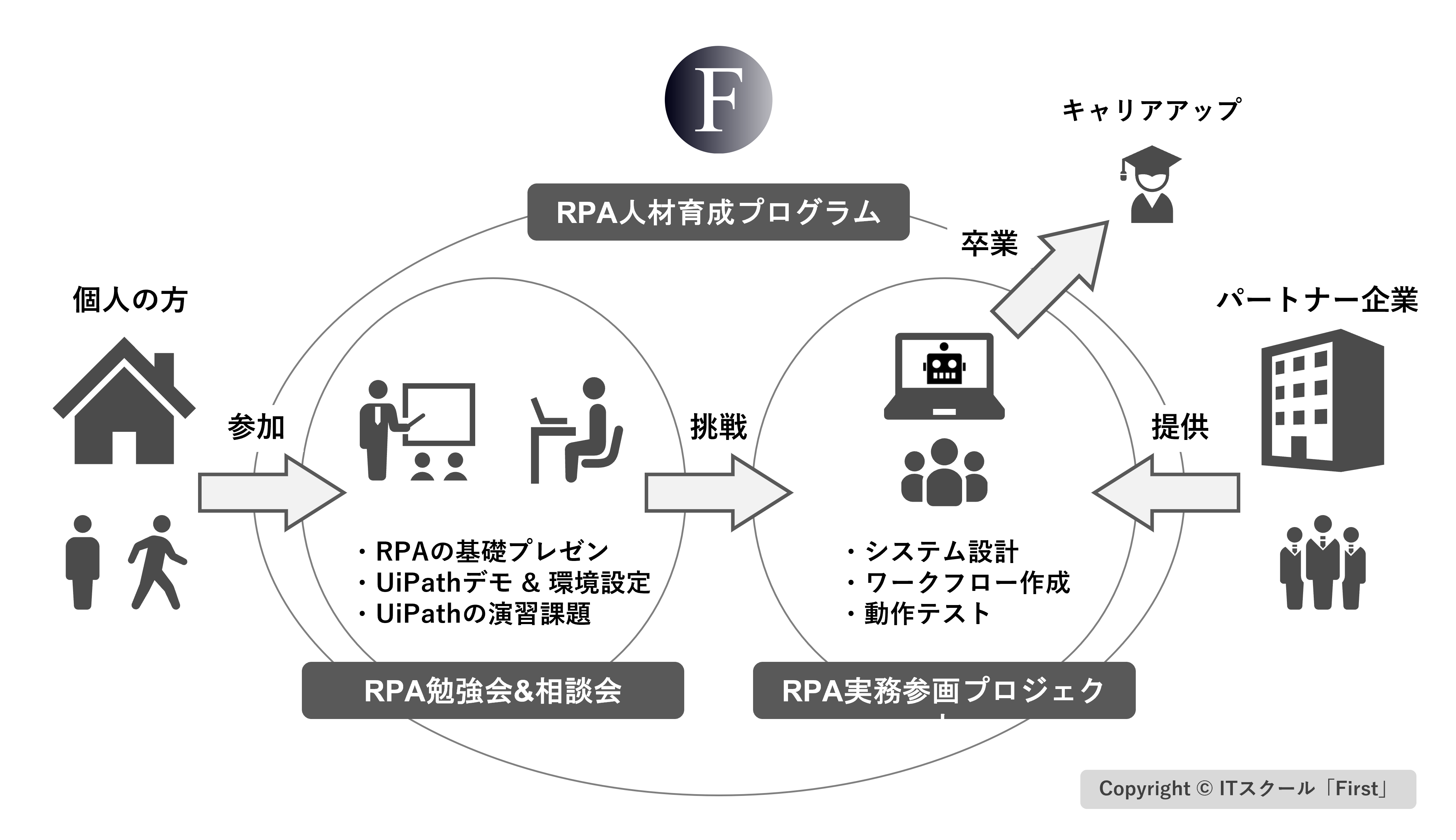 この度、ITスクール「First」内で、『RPA実務参画プロジェクト』を始めます。本プロジェクトの内容は下記の通りです。ご興味のある方は、お気軽にご連絡ください。