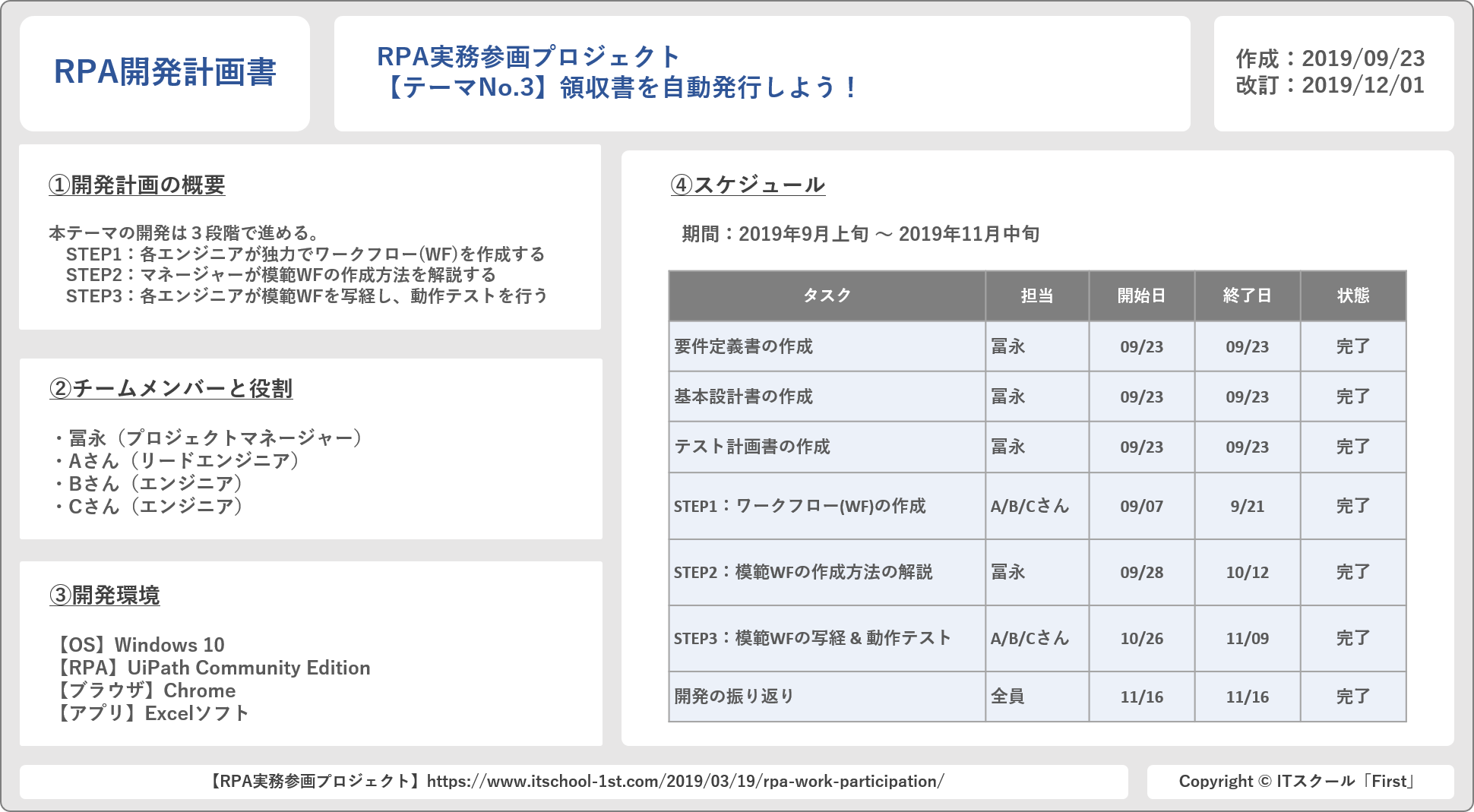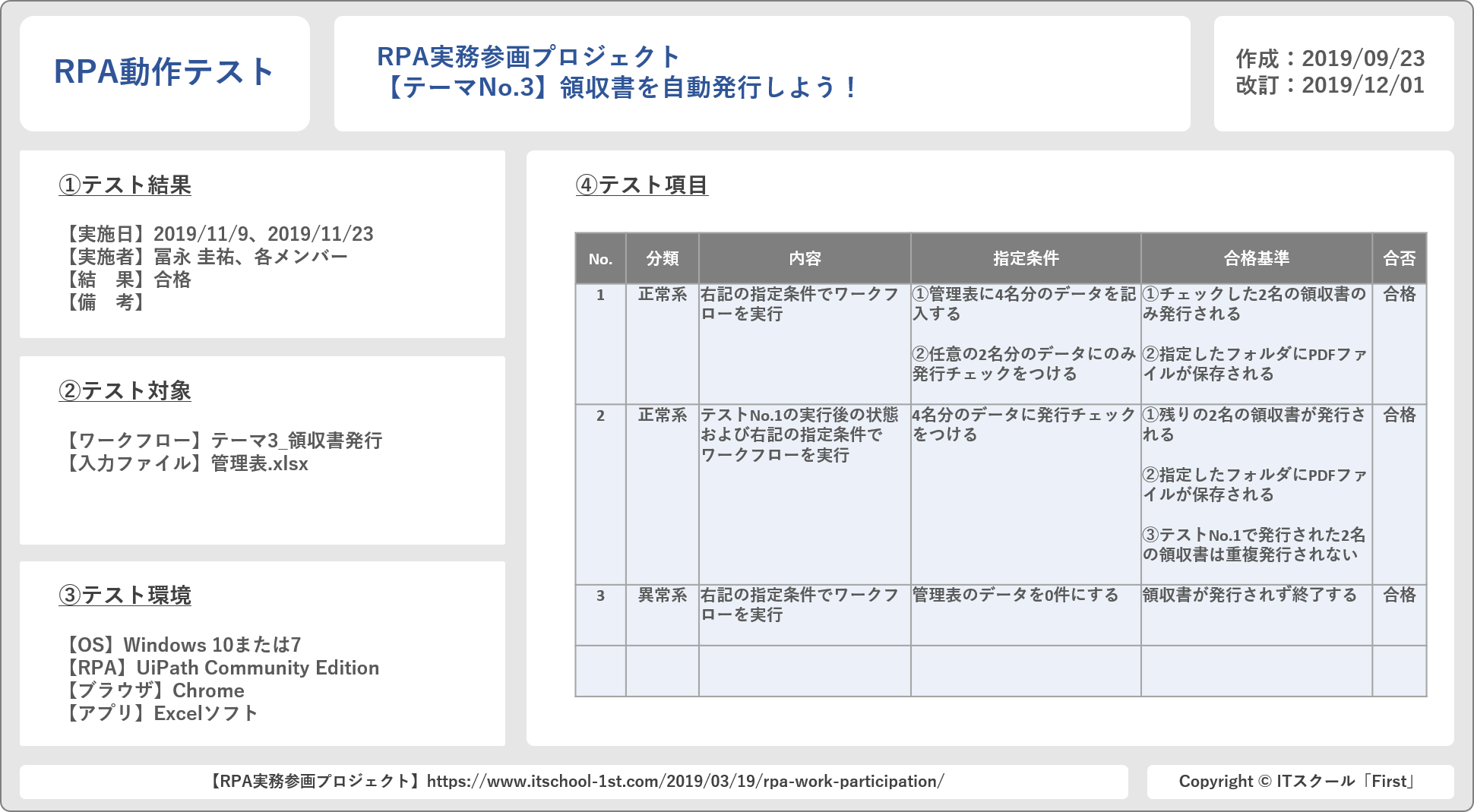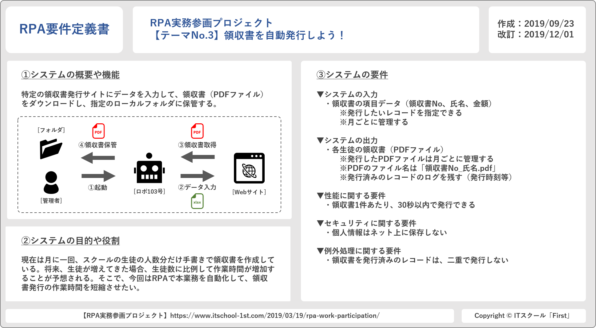 RPA実務参画プロジェクト・テーマNo.3「領収書の自動発行」が完了しましたので、活動内容を報告いたします。
