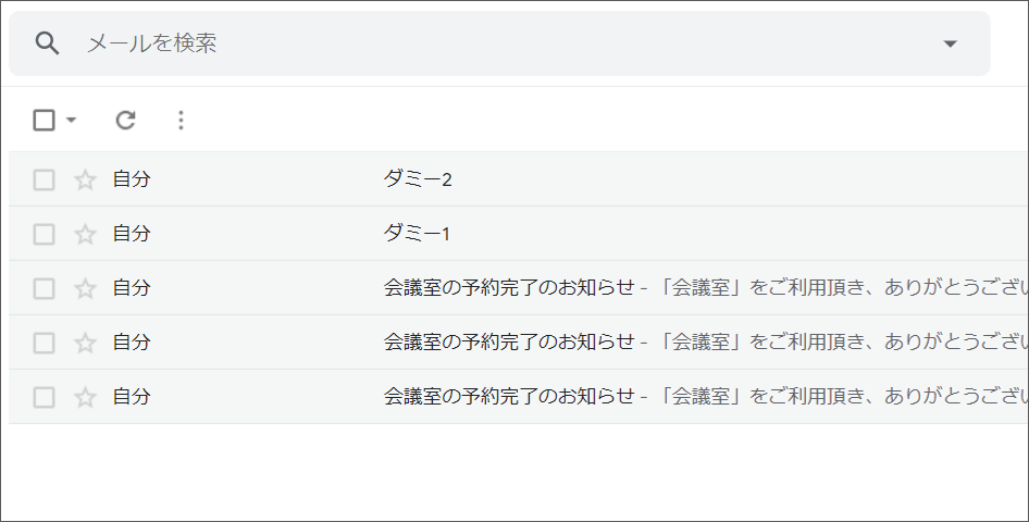 先ずは、下記のようなメールを受信トレイに3つ用意します。各メールで、予約内容のデータを適当に変更しておいてください。今回は、メール本文から以下のデータを抽出することにします。