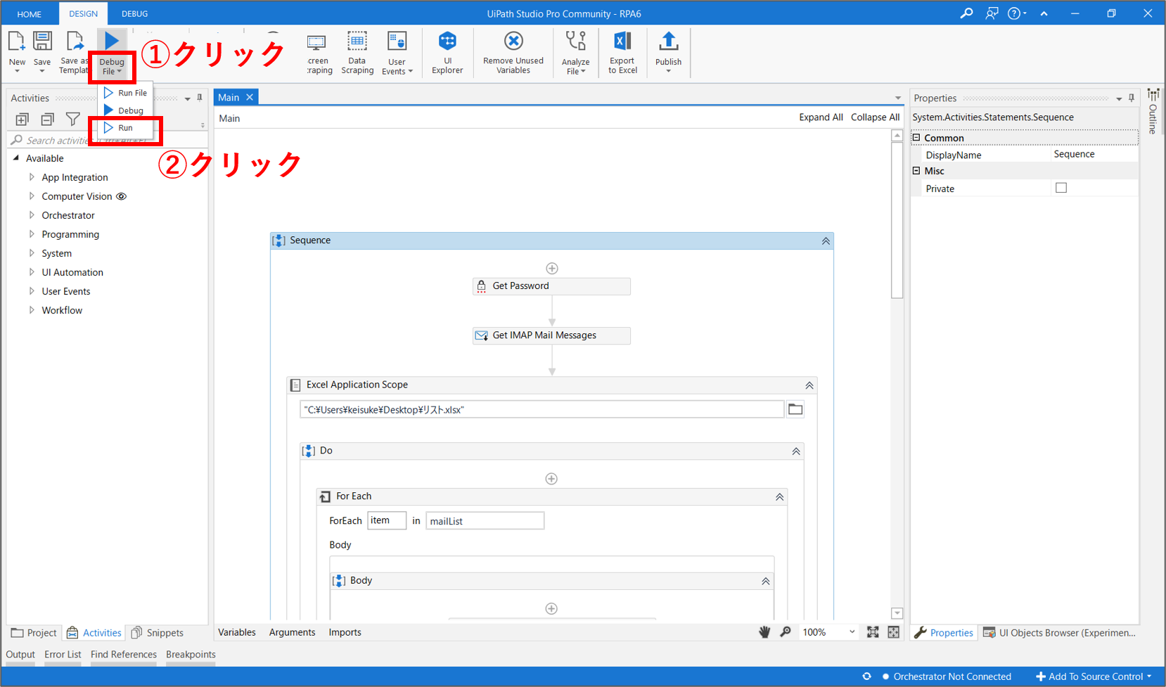 なお、今回は動作確認のために一時的に「Get Password」アクティビティを使用しました。ただし、「Get Password」アクティビティでの永続的なパスワード管理は非推奨のようです。詳細はこちらの公式サイトの内容をご確認ください。