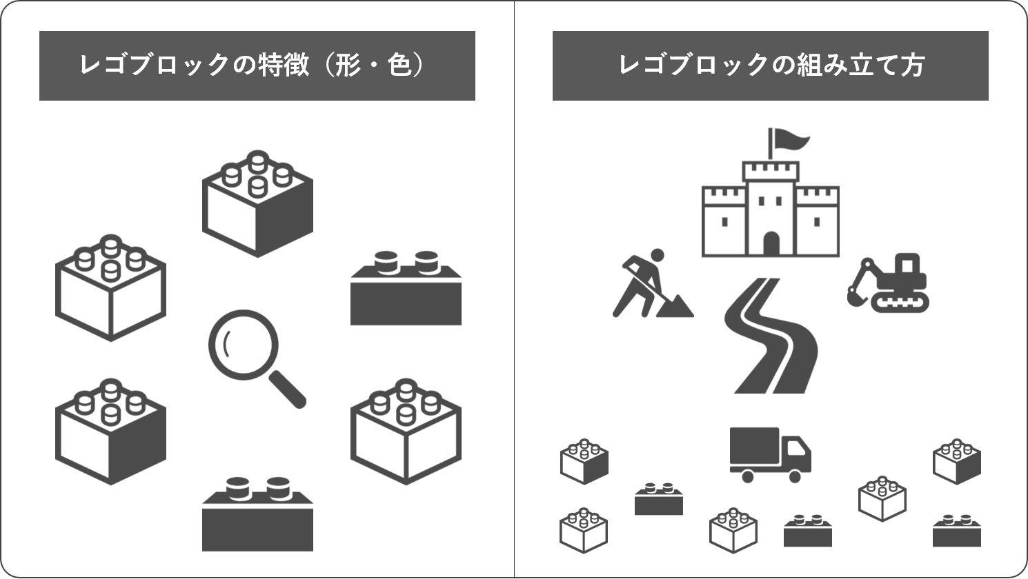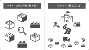 しかし、いくら個々のレゴブロックの「特徴」について詳しくなっても、あなたはレゴブロックを組み立てて、何かを作れるようにはならないでしょう。なぜなら、あなたはレゴブロックの「組み立て方」を知らないからです。