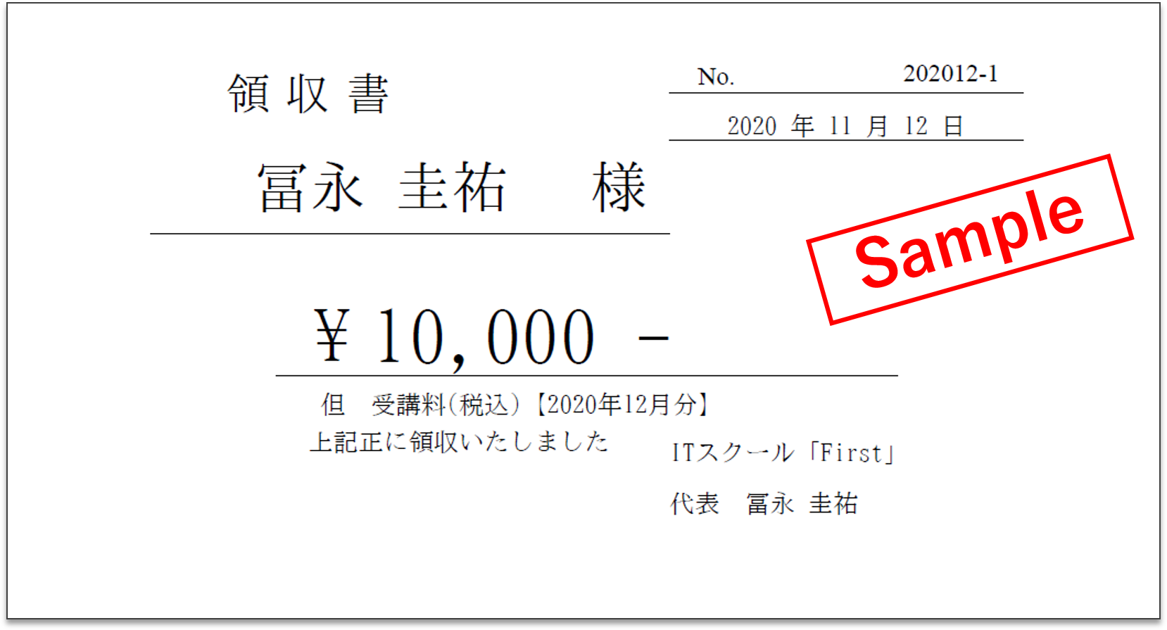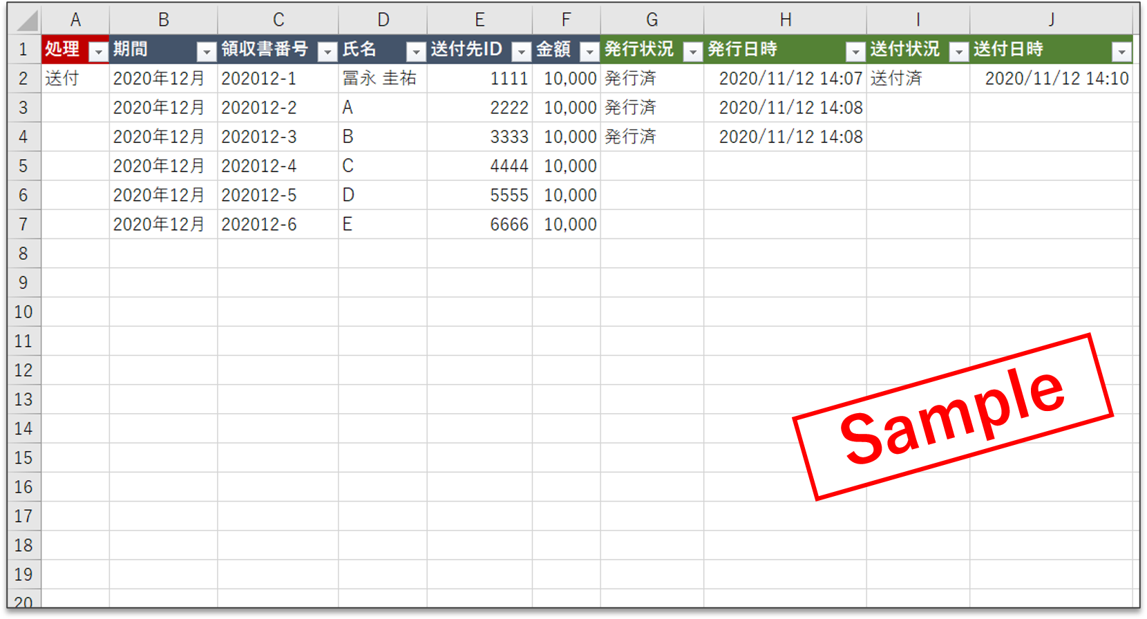 | 管理表ファイル(Excel) | 各生徒の領収書に関するデータを登録しておく |