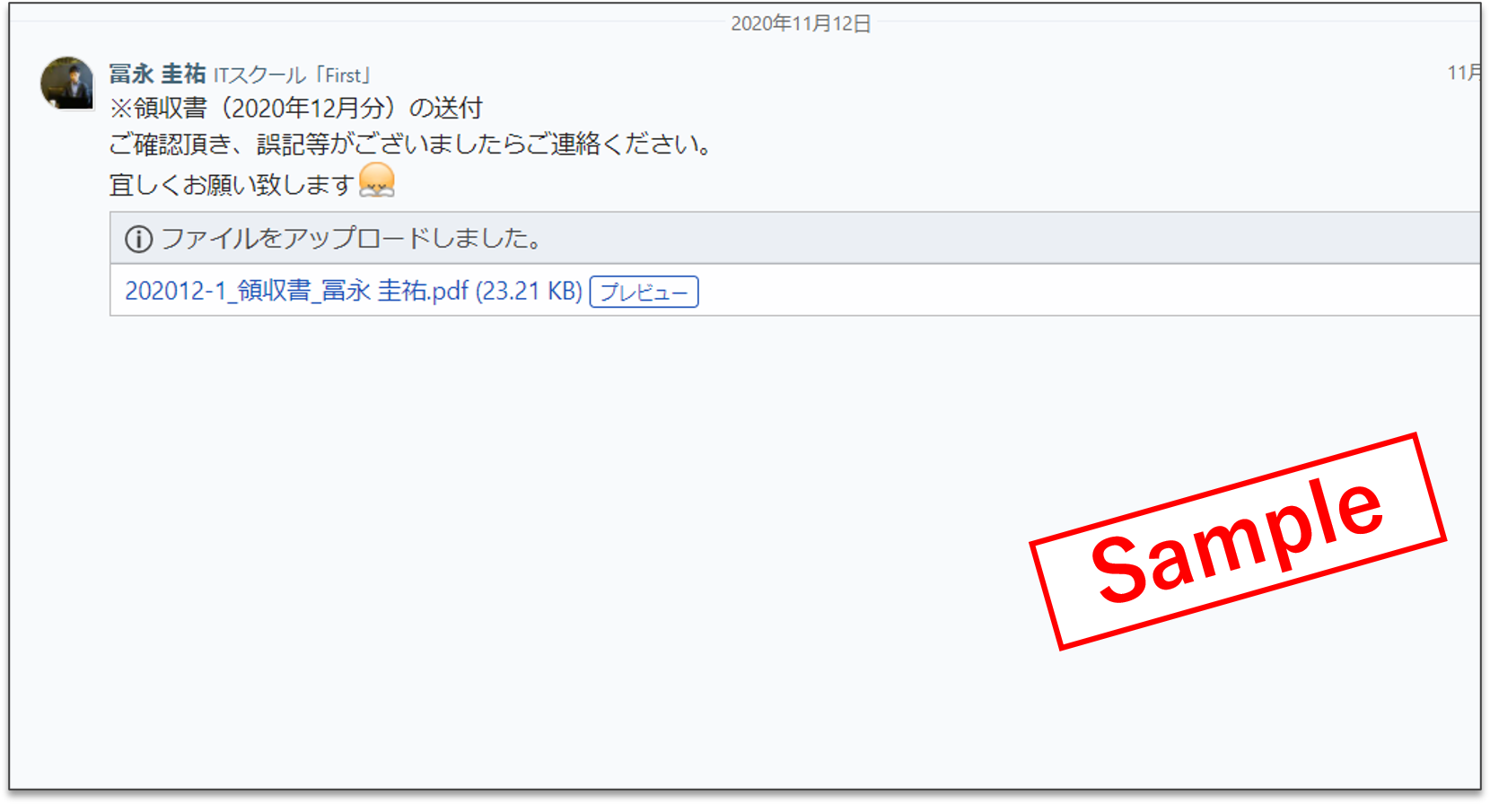 現在、当ITスクールでは毎月一回、各生徒に領収書ファイル(PDF)を発行する際に「Chatwork」にアップロードしています。なお、領収書ファイルの作成自体は既に別のRPAで自動化しています。念のため、作成された領収書ファイルの中身を目視でチェックしてから、Chatworkに手動でアップロードする流れになっています。