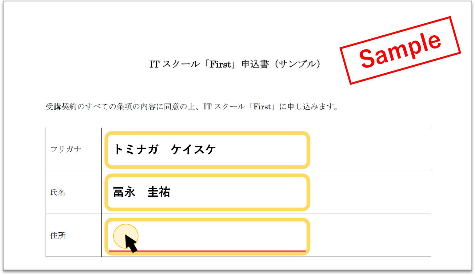 実際には、下記のような申込書をクラウドサイン経由で申込者に送付することになります。